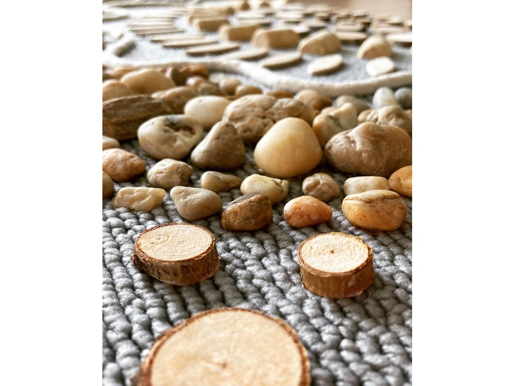 Použit je přírodní materiál jako korek, dřevo, kámen.