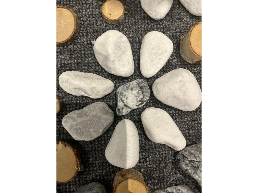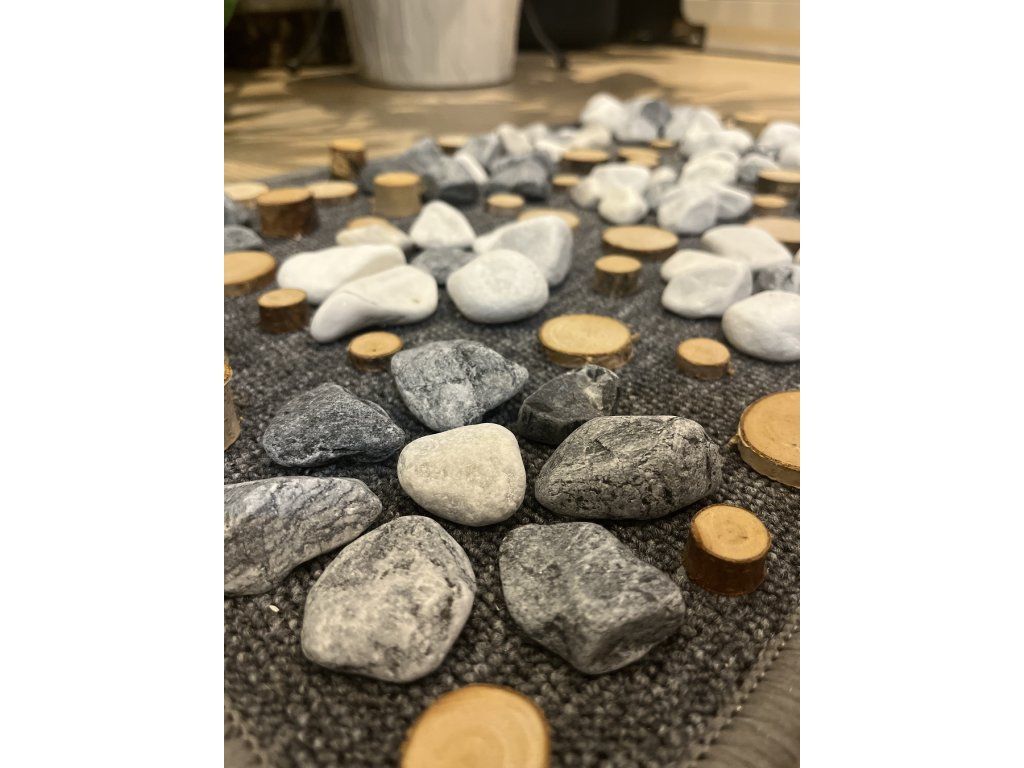 Použit je přírodní materiál jako dřevo, korek, mramorový valoun.