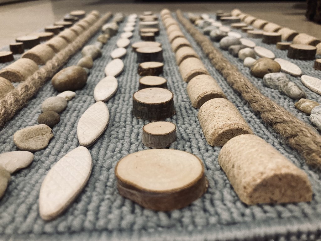 Použit je přírodní materiál jako korek, dřevo, kámen.