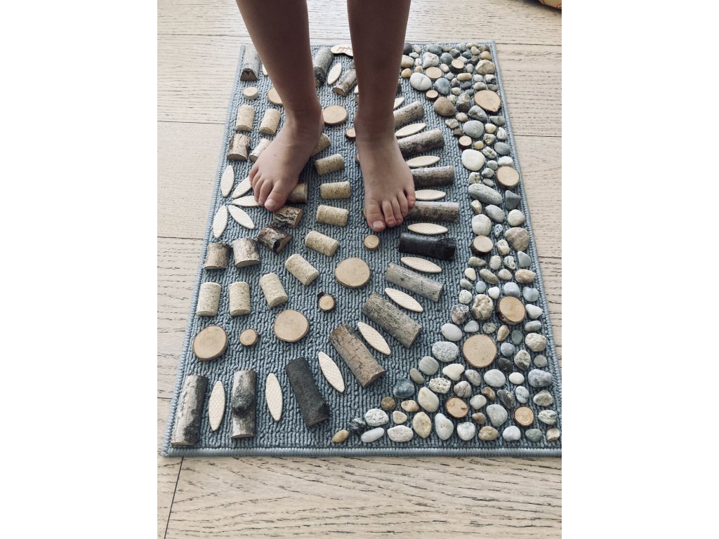 Senzomotorický koberec Relaxation obsahuje nové velké prvky břízy, které jsou vhodné i pro zkušené barefooťáky.