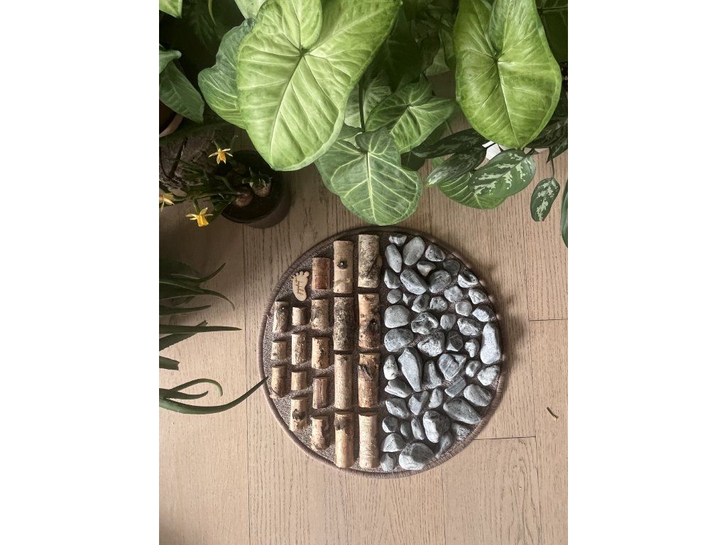 Senzomotorický koberec Snufly nabízí dva hlavní masážní prvky. Kámen a dřevo. Dva základní stavební pilíře, které vašim chodidlům nabídnou vše, co by jste našli bosým dotekem v přírodě.